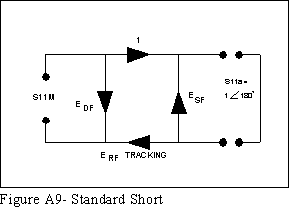 suggested, but the results are mathematically equivalent. Let us consider measurement of reflection coefficients (magnitude and phase) of some unknown one-port device. No matter how careful we are, the measured data will differ from the actual. Directivity, Source Match, and Tracking are the main sources of error.